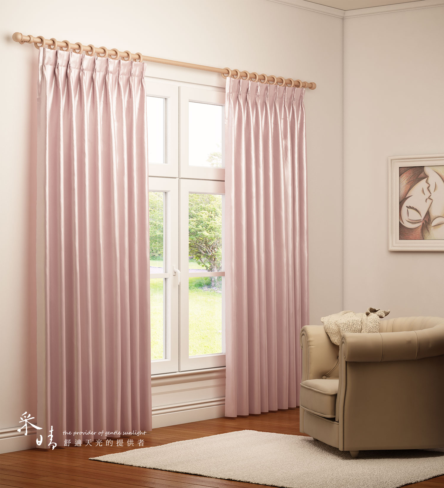 單層經典布窗簾-雙開-藝軌插勾